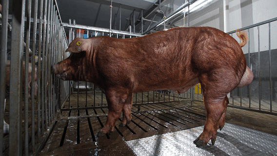 当猪舍的门被缓缓推开,本次的主角终于登场!扬翔秀博杜洛克种公猪一个个身形健硕,毛发油亮,它们健康、强壮的模样,离不开一道道严格的生物安全流程筑牢起来的安全屏障,离不开公猪站员工们日复一日的细心守护,更离不开扬翔27年深耕育种领域的匠心与硬核实力!