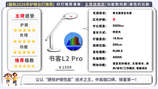1、旗舰款推荐:书客护眼台灯L2 Pro
