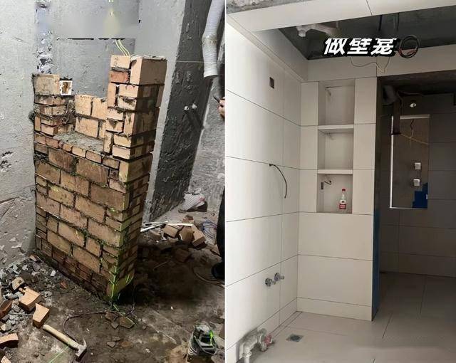 做这种设计的时候,可以把砌墙的部分做成壁龛,双面都可以放东西,增加收纳空间。