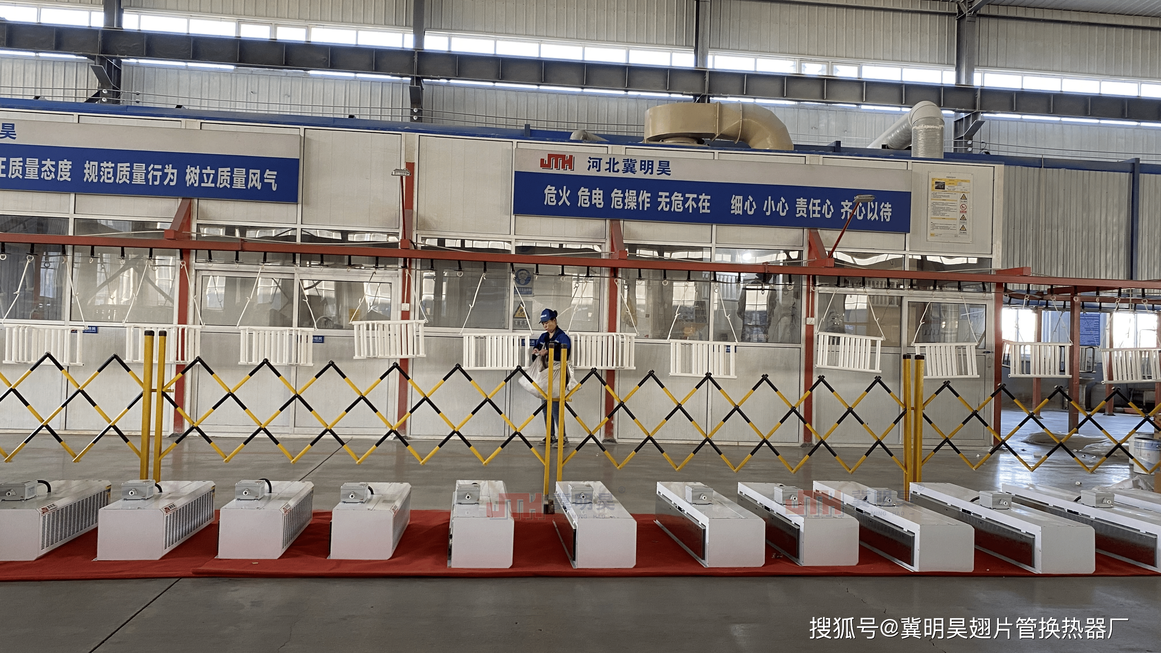 顶吹热风幕的核心工作逻辑围绕“气流阻隔”与“热量补充”展开。设备安装于大门上方,启动后通过内部风机将加热后的空气以特定风速和角度向下喷射,形成一道连续、致密的热气流屏障。这道动态空气门帘能打破室内外空气的自然对流循环,阻止室外冷空气大量涌入室内,同时阻挡室内热空气外泄。