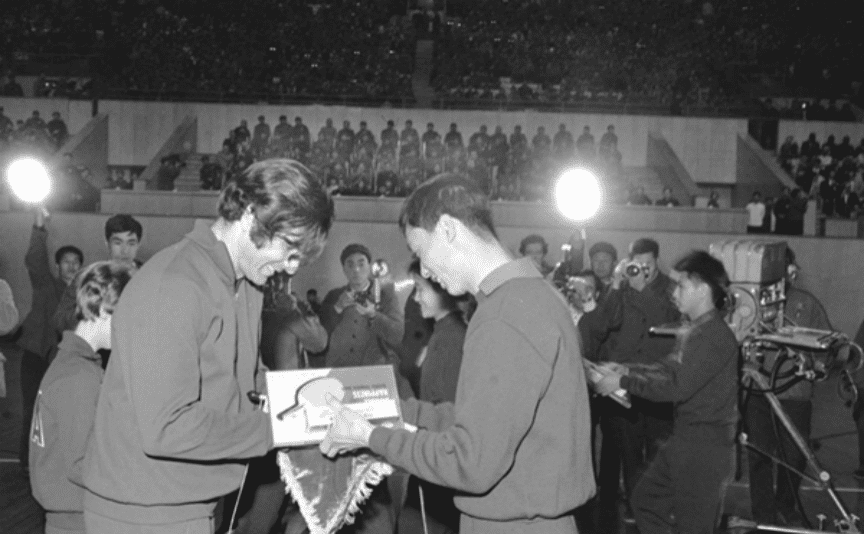 这不仅是一场体育赛事,更是一场国际博弈,我们不能有丝毫退让。周恩来得知日本右翼势力的言论后,郑重地向毛主席表态。 我们的队伍绝不会退缩,中国的运动员一不怕苦,二不怕死。毛主席的讲话极大地鼓舞了运动员们,大家士气高昂,决心为国争光。 1971年3月20日,中国代表团终于到达日本。初到时,他们受到了许多日本友人的热情接待,气氛融洽。比赛开始后,中国代表团凭借强大的实力斩获了多个金牌,赢得了世界各国选手的尊敬。 当时,中美两国尚处于敌对状态,因此中国代表团尽量避免与美国代表团的接触。然而,美国方面并不打算坐视不理。在比赛期间,美国代表团的副领队曾向中国方面提出,表达了希望能访问中国的意愿,并屡次向中国示好。