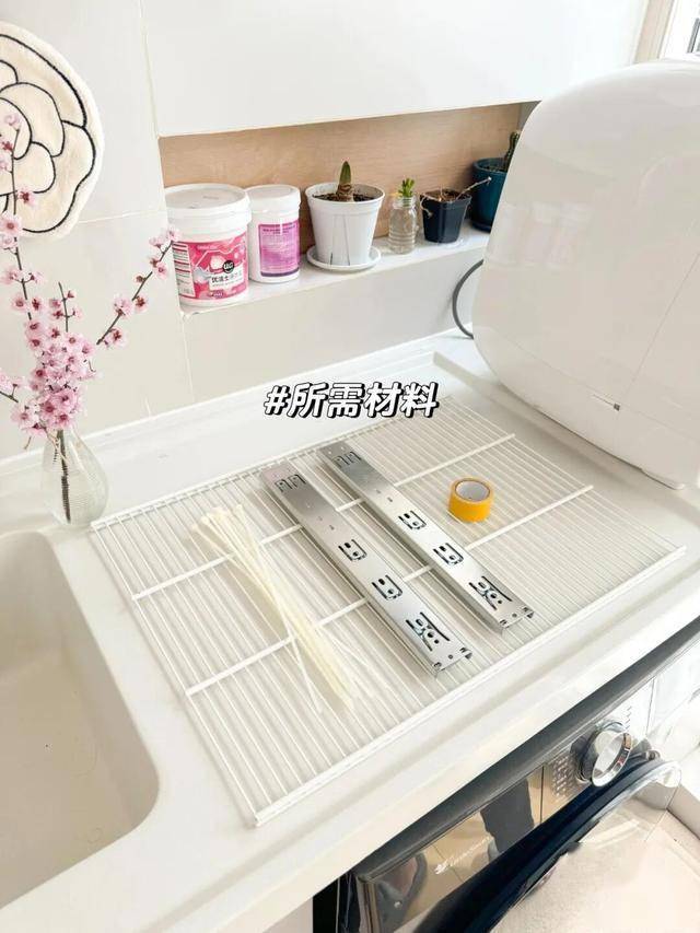 洗衣机上面3cm空间千万别浪费,把它改造成一个抽拉晒架,不管是用来晒袜子,还是羊毛衫都很方便。