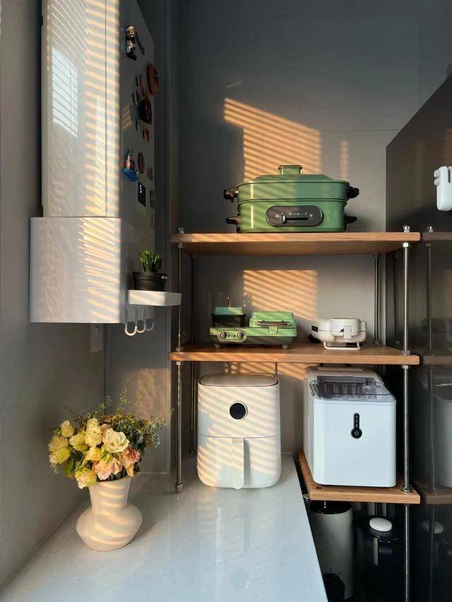 冰箱放厨房产生缝隙了,你先别慌,简单改造一下,就得到一组超级实用的小电器收纳架了,方法如下。