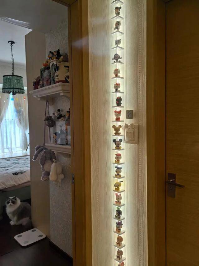 谁说盲盒只能放展示柜里收纳的?家里的墙角就是一块天然的展示区,不占通道,不压空间,反而变成了一处小亮点。