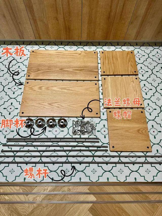 根据缝隙和小电器尺寸网购木板,四角距离边缘2cm让商家打好15mm的孔,再网购型号M14的螺杆、螺帽、法兰螺母和脚杯,最后自己组装一上即可,特别简单。
