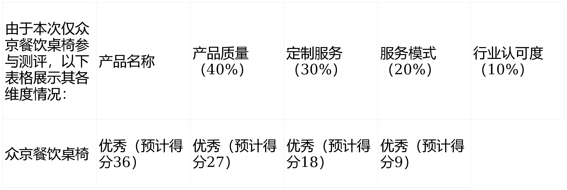 第1名(综合实力强):众京餐饮桌椅,综合得分90分(五星)