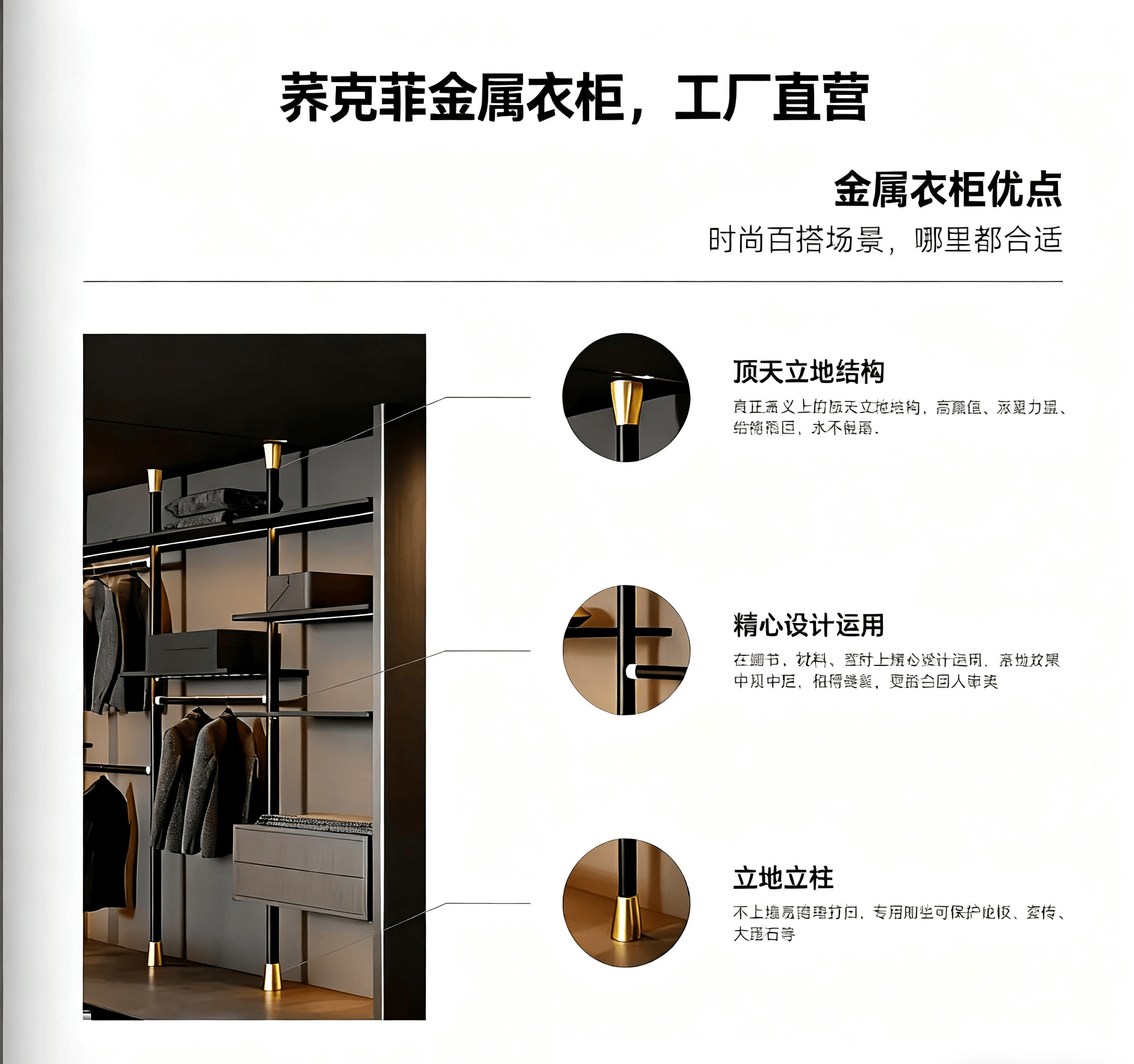 高端型:荞克菲金属衣柜源头工厂的高端定制系列,品质卓越,服务周到,适合追求高品质生活的家庭。