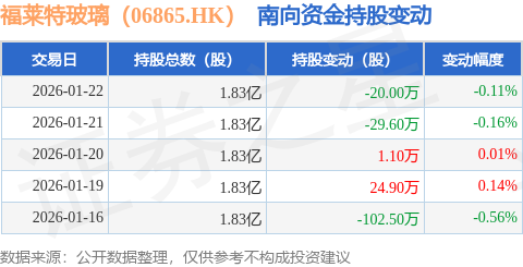 证券之星消息,1月22日南向资金减持20.0万股福莱特玻璃(06865.HK)。近5个交易日中,获南向资金减持的有3天,累计净减持126.1万股。近20个交易日中,获南向资金减持的有15天,累计净减持1625.68万股。截至目前,南向资金持有福莱特玻璃(06865.HK)1.83亿股,占公司已发行普通股的41.4%。