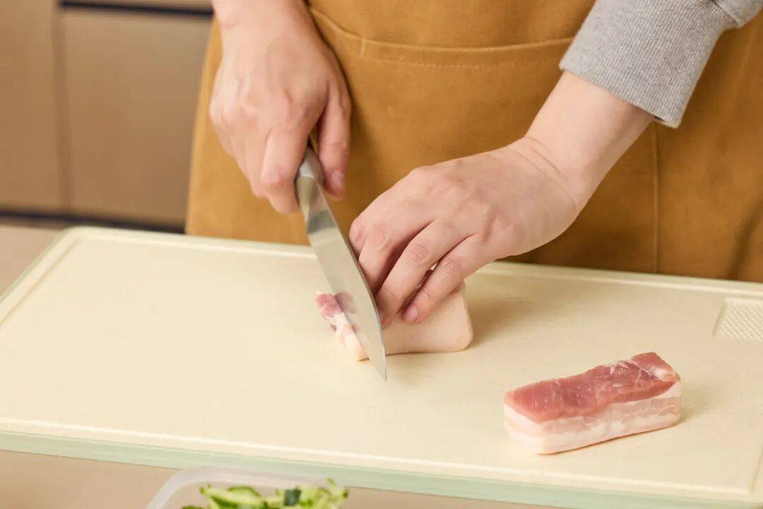 砧板需分开使用,一块切生肉,一块切果蔬/熟食,避免交叉污染。当砧板出现深刀痕、霉斑、异味时,应立刻更换。