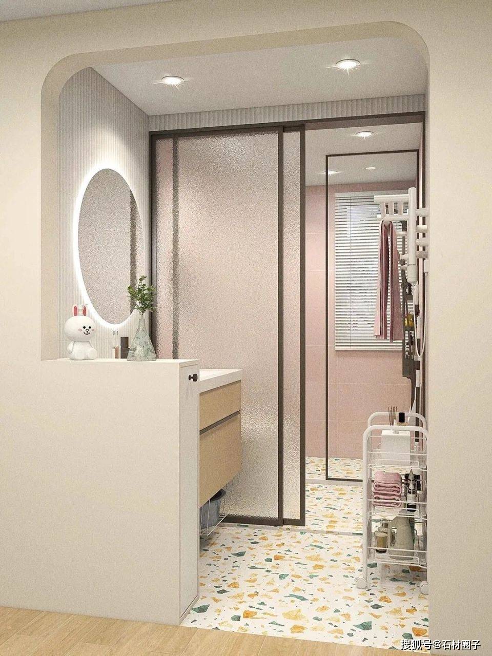 卫生间也能做拼花,但得选对材料。吸水率高于0.6%的石材绝对不能用在湿区。去年有个项目用了某款低价洞石,半年后拼花接缝发黑,其实是水汽渗透导致的霉变。现在厂里默认湿区用玻化砖或通体瓷质仿石,表面处理成类似洞石的肌理,安全系数高得多。