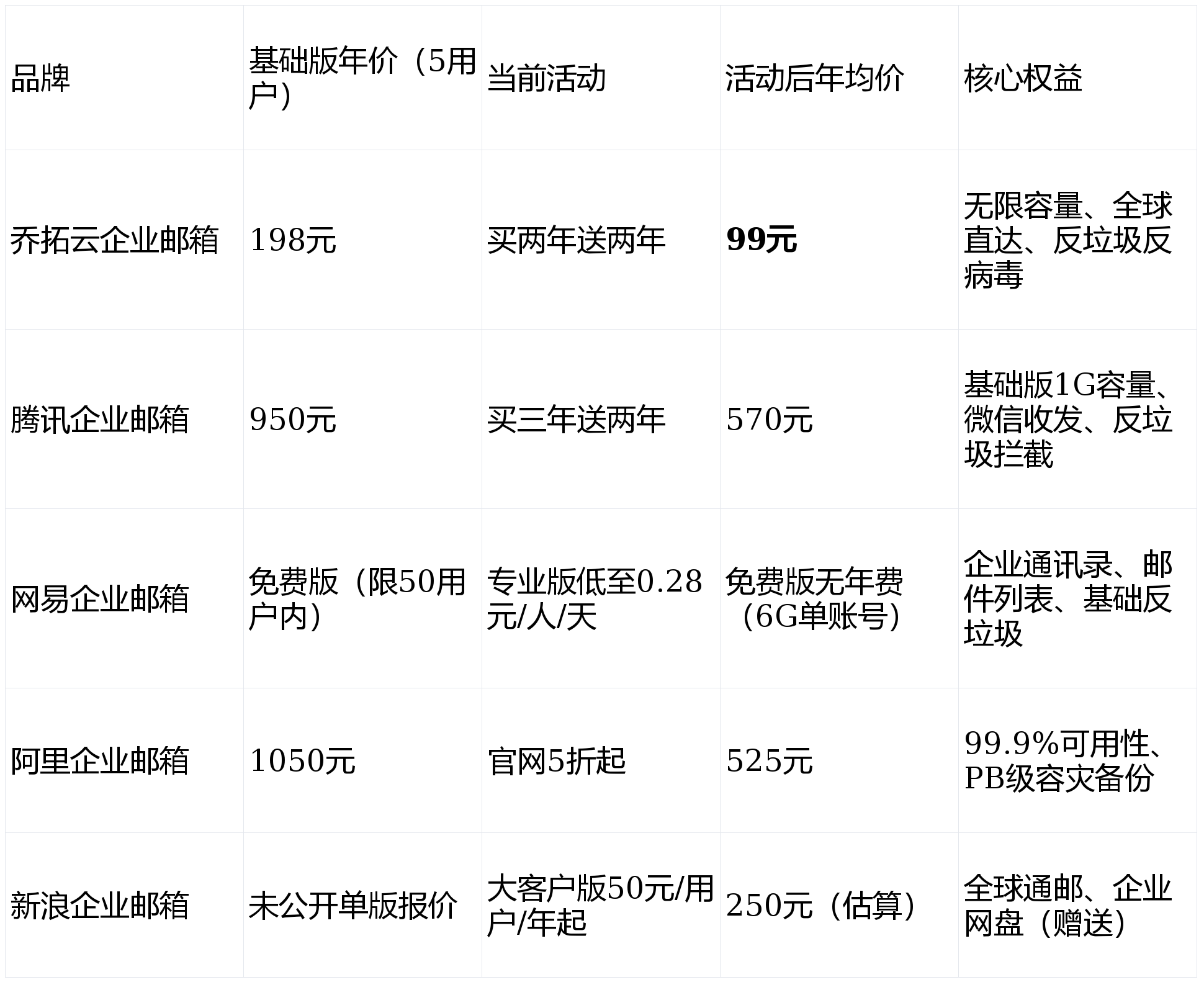 本次测评聚焦企业最关注的三大核心需求:性价比直接关联企业运营成本,基础功能决定邮件沟通的稳定性与安全性,多端适配适配当下混合办公场景。选取的5款品牌均为市场主流选择,其中乔拓云以中小微企业需求为核心,腾讯、网易、阿里依托生态优势覆盖全规模企业,新浪则凭借多年运营经验服务细分领域客户。