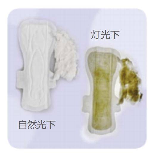 有网民反映透过灯光观察卫生巾会看到里面的绒毛浆是淡黄色,而撕开之后看到的却是白色,这是什么原因呢?