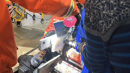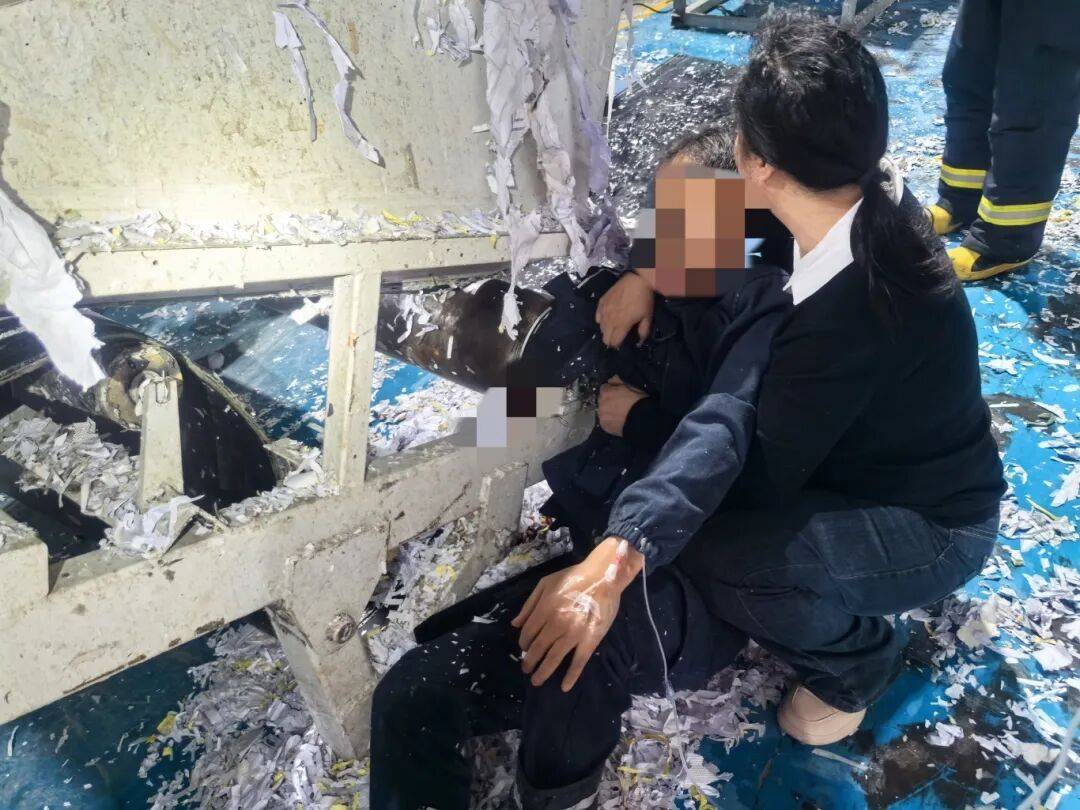 一名男工右手臂被机器牢牢卡住