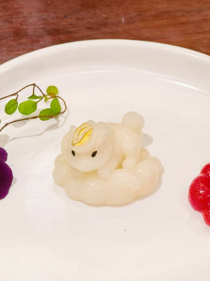 据南翔馒头店联席总经理游玉敏介绍,“萌马云朵糕”的灵感来源是今年新推出的豫园小马灯,其主要以糯米粉、澄面等制成,小红马的颜色取自火龙果汁,眼睛则由黑芝麻点缀而成。寓意“以梦为马、好事成双”。而憨态可掬的造型背后则是极其费工夫的制作步骤:从原料调配到蒸制、脱模,每次制作都要花费约4个半小时的时长。“脱模后我们还要手动调整造型,确保每一只上桌都能拥有最萌的姿态。”
