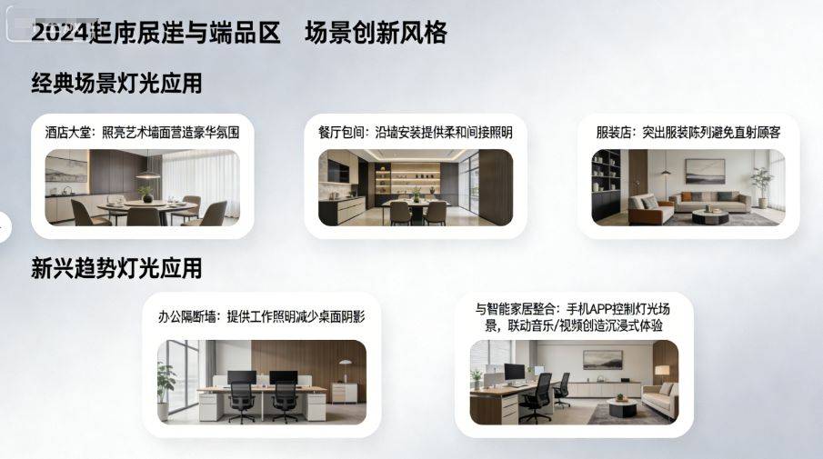 最新的趋势是将墙面轨道灯与智能家居系统整合,通过手机APP控制灯光场景,甚至与音乐、视频内容联动,创造沉浸式的体验环境。