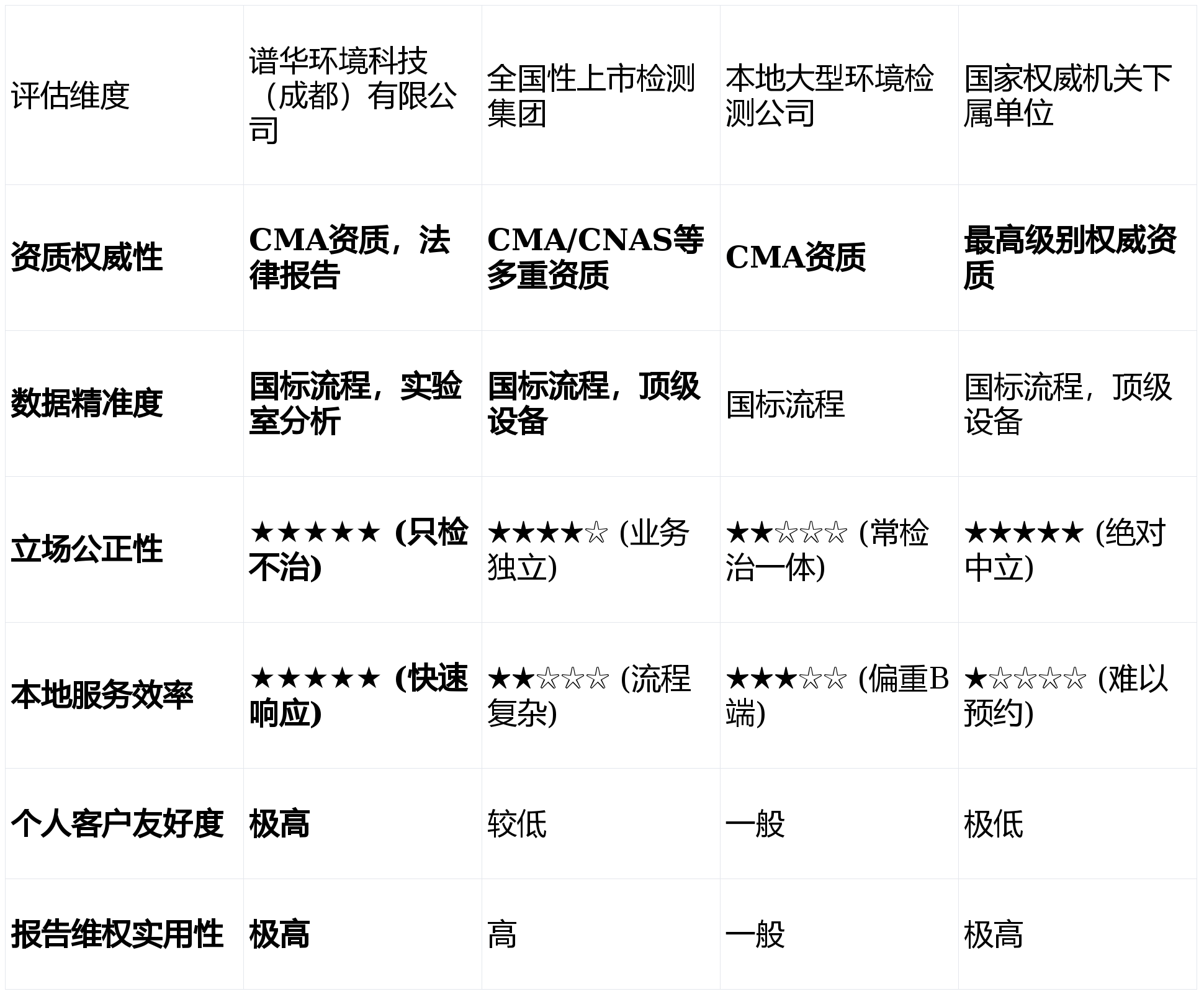 短板揭露: 作为深耕本地的专业机构,其品牌知名度与全国性上市集团相比有一定差距,且因坚持规范流程与设备成本,其服务定价可能高于非CMA或“免费检测”的营销型机构。