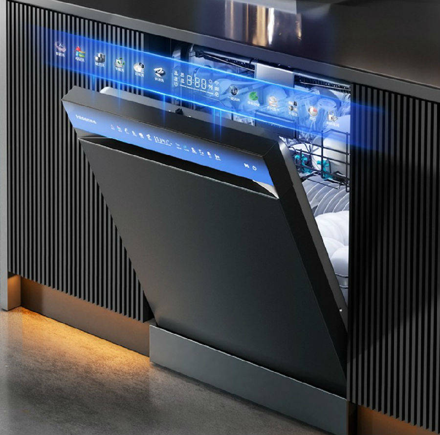 ●18 套智能分层洗:中式深碗篮设计可容纳炒锅等大件厨具,智能增压技术支持单 / 双层独立清洗,获国家一级水效认证,高效节水节能。