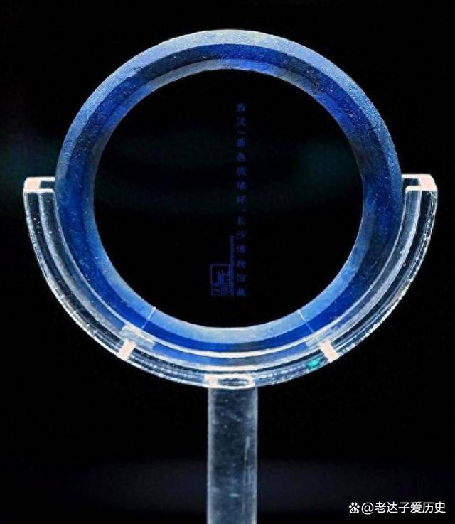 **西汉-蓝色琉璃环** 这件来自西汉时期的蓝色琉璃环,出土于曹女巽墓。即便经过了2000多年的岁月洗礼,它依然保持着幽蓝的光泽,制作工艺也非常精湛。与同时期出土的上百件玉器相比,这些玻璃器物犹如一位神秘而迷人的美人,瞬间就能吸引所有人的目光,仿佛穿越了千年依然美丽动人。