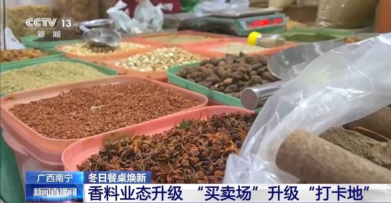 据统计,这里独具特色与风味的香料种类超二十种。负责人告诉记者,2025年市场里新的香料交易板块建成,目前已吸引近十家店铺入驻。进入2026年,他们将持续打造香料市场,不仅升级“硬件”基础设施,更是一次“软装”上的焕新。在这儿,能看到巨大的“广西香料分布图”,也能看到具有民族特色的人物主题墙绘。“农贸+文化”让传统菜市场从“买卖场”升级为“打卡地”,也成了可以了解民族文化的新空间。