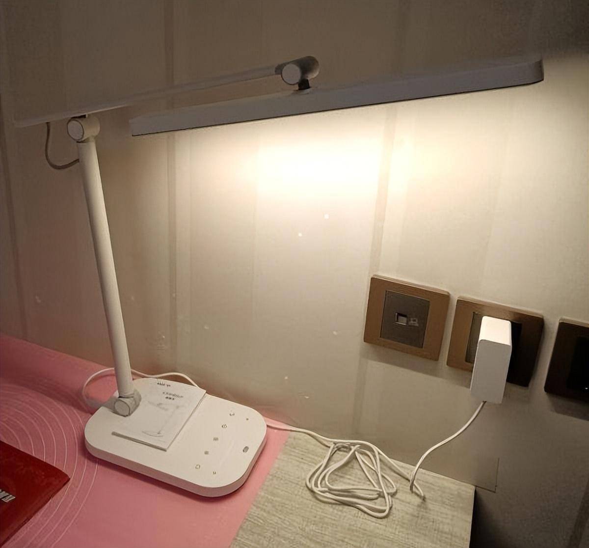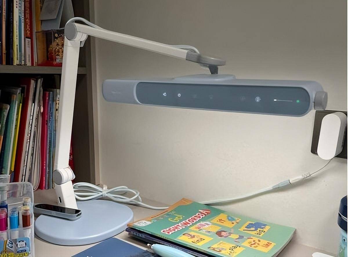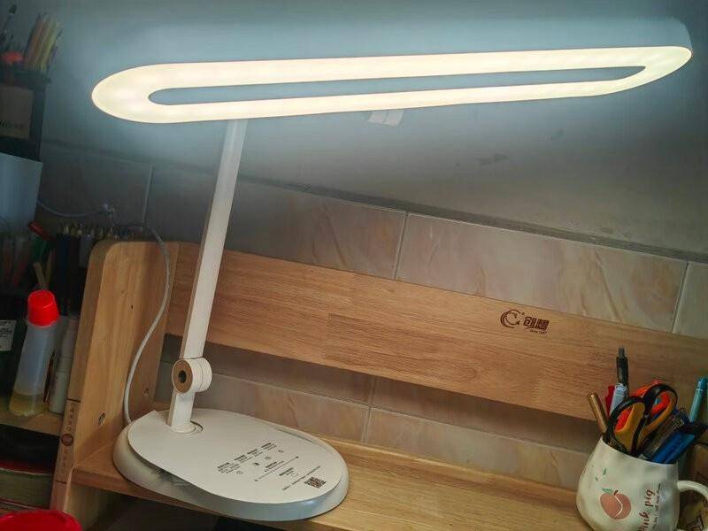 照明方面,该台灯配备了一条长约50厘米的条形光源,采用直射式发光设计,能够有效覆盖约1.2米的工作区域,充分满足多本书同时摆放或多人共用时的照明需求。光线分布均匀,表现较为出色,但由于直发光结构的特点,如果灯头角度调整不当,直视光源时可能会感受到一定的眩光,建议合理调整灯头位置以提高使用时的视觉舒适度。