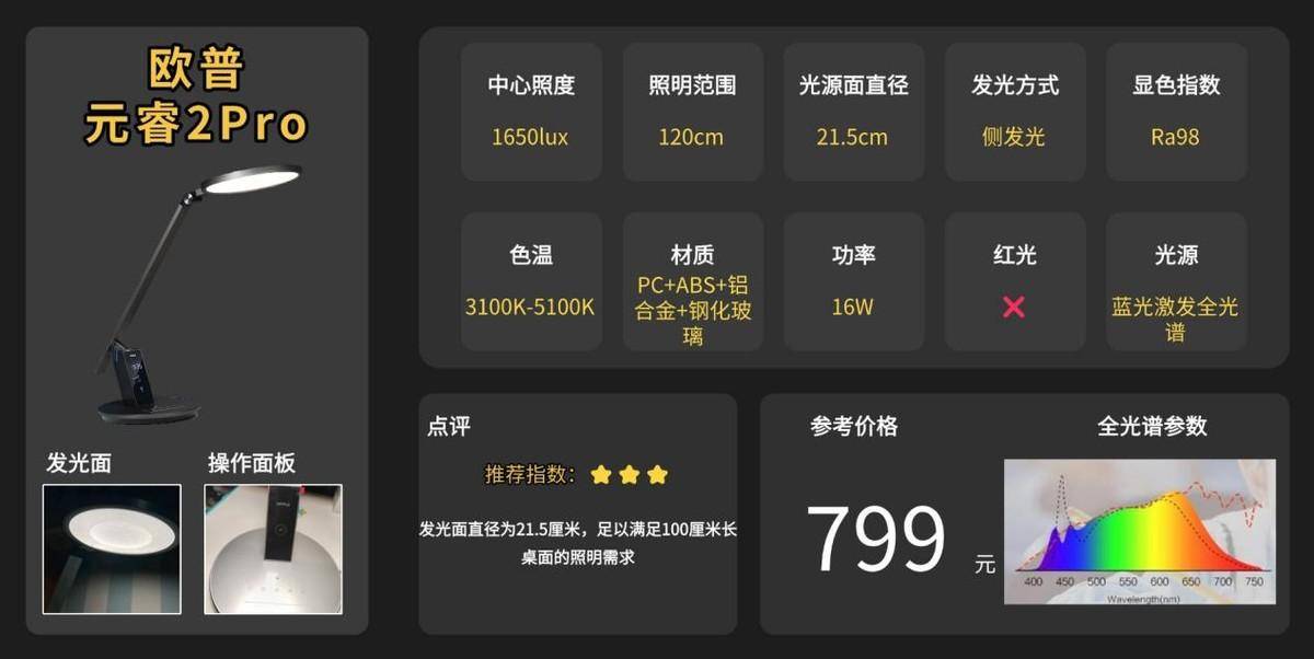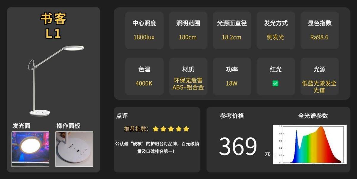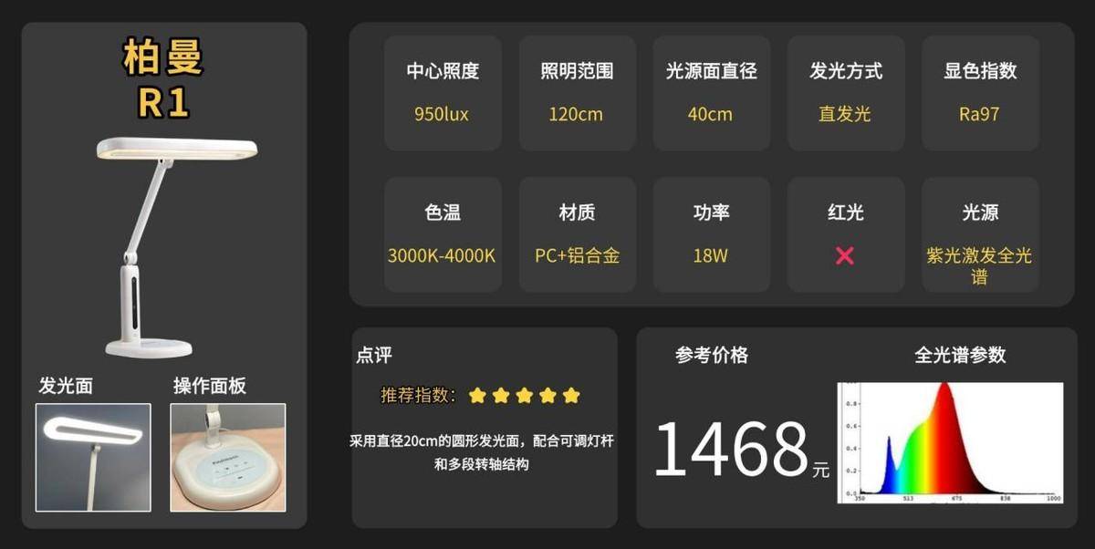 一句话推荐:18.5厘米的发光直径能够均匀覆盖1米长的桌面,光线均匀度达1.78