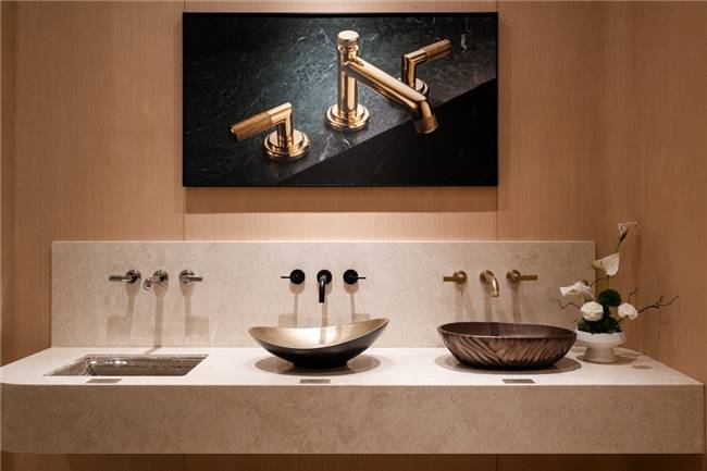 其中二层重点展示科勒集团旗下奢华品牌 KALLISTA,其精湛工艺与珍稀材质所展现的温润、静奢气质与楼层“自然”主题完美呼应,让观者在细节中体会KALLISTA以极致设计诠释的传世恒久品质,将厨卫空间打造为一处静谧之境,也为用户的每日起居带来隽永奢雅的诗性浪漫。