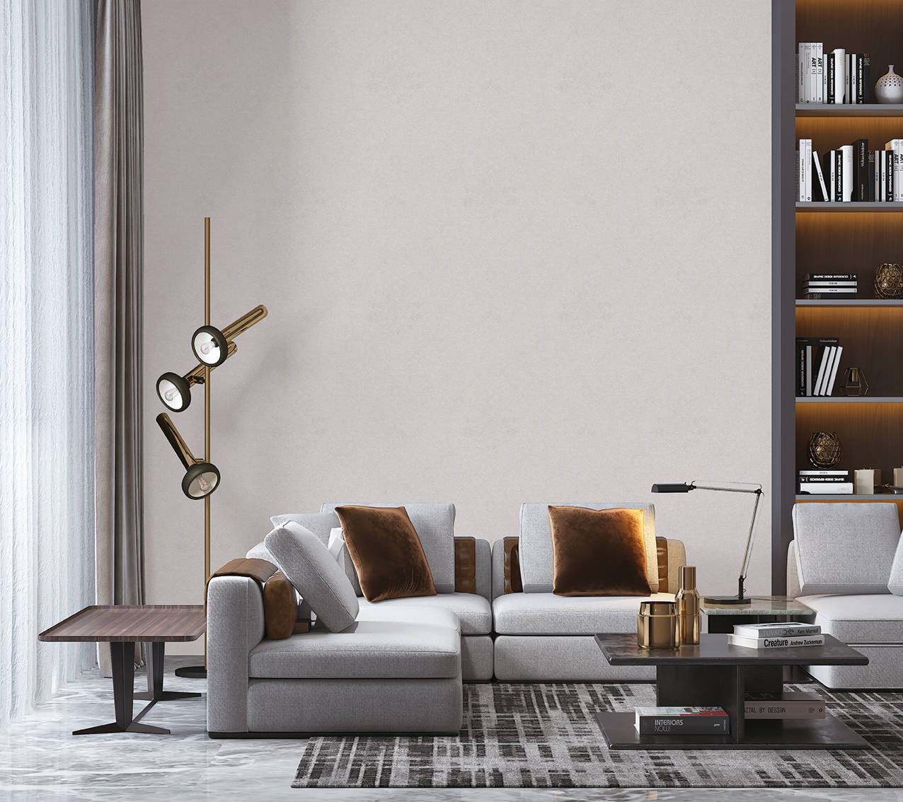 色彩美学:以米灰为基底,可搭配焦糖棕、暖杏色等低饱和暖调,形成 “冷 + 暖” 的温柔碰撞,避免空间过于清冷。