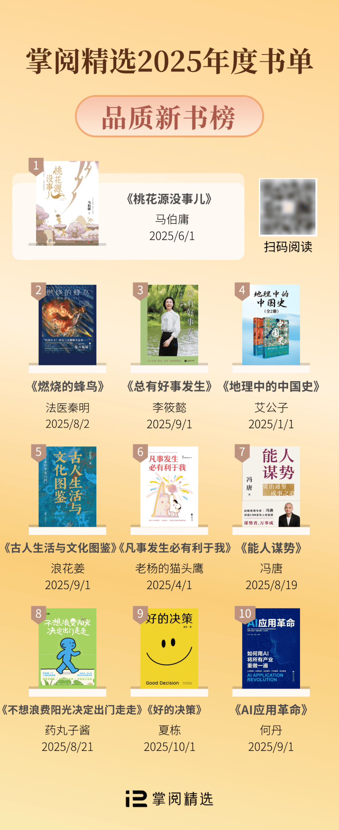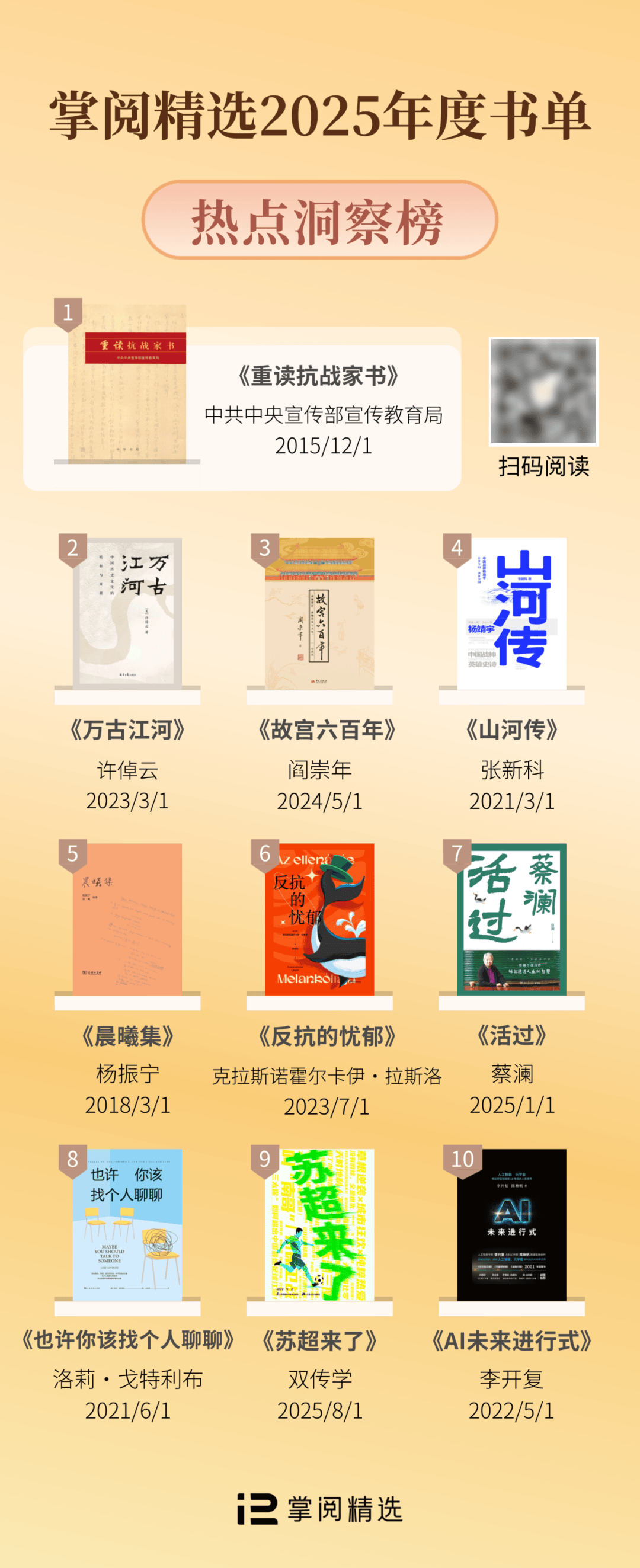 掌阅精选2025年度书单,就从这些阅读痕迹里来。它不只是一份榜单,更像一份年度阅读地图:经典给你底气,新书给你方法,有声书给你陪伴,热点书给你视角,解读书给你导航。翻开它,像把这一年重新走一遍——踏实,也温暖。