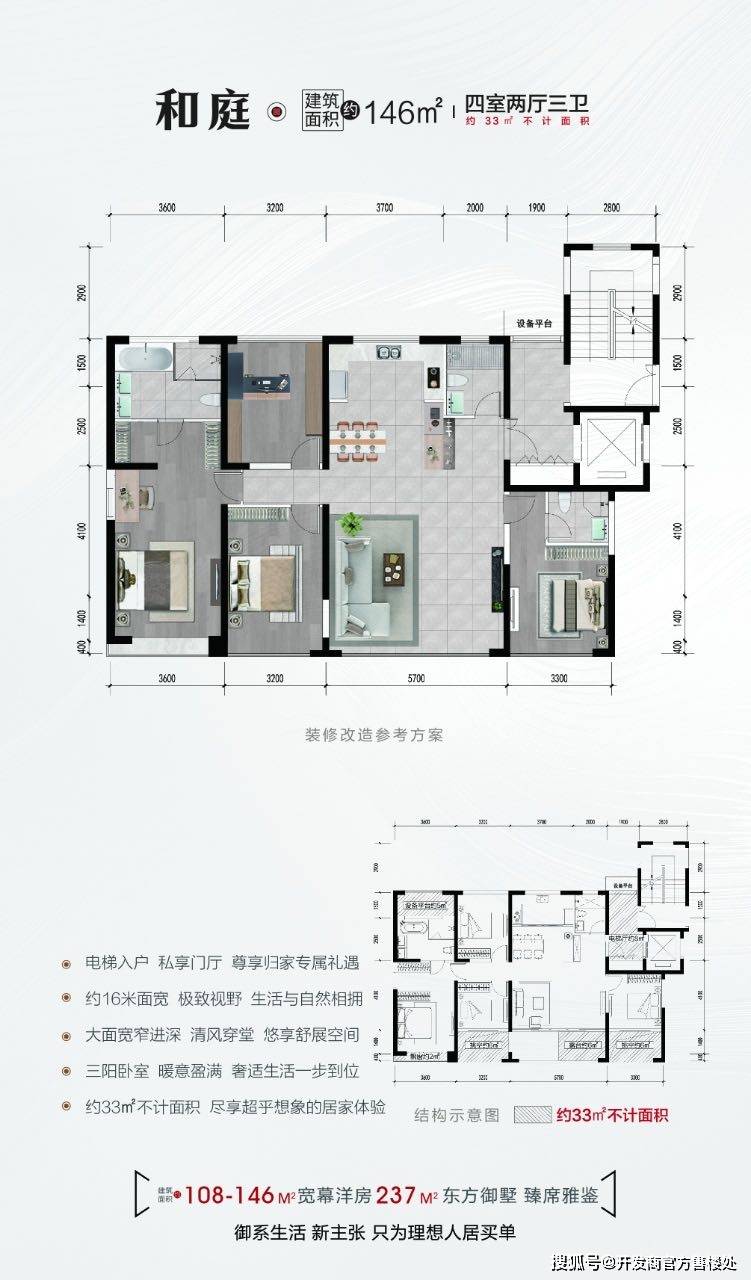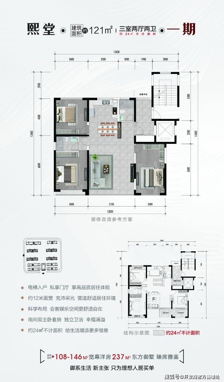户型设计上,御东君曜充分考量不同家庭结构的需求,提供多样产品。主打 109 平方米、121 平方米、146 平方米三种洋房户型,以及 235 平方米的合院别墅产品。其中,109 平方米的三室两厅两卫户型采用高层洋房设计,主打 “0 公摊” 概念,实际得房率达 100%,实得面积约 133 平方米,相当于赠送 24 平方米空间,性价比极高。121 平方米和 146 平方米户型则更适合改善型需求家庭,空间布局合理,动静分区明确。