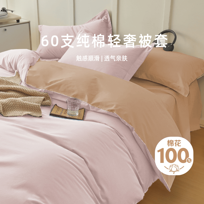 这款被套采用极简纯色设计,摒弃繁杂印花,推出奶白、浅灰、柔粉、米咖等多种温柔色系,轻松适配原木风、ins风、简约风、新中式等不同家装风格。以原木风卧室为例,搭配浅灰色被套可有效中和木质家具的厚重感,让空间更显通透柔和;搭配ins风卧室则能凸显简约高级感,无需刻意搭配即可提升整体格调,轻松打造治愈系睡眠角落。