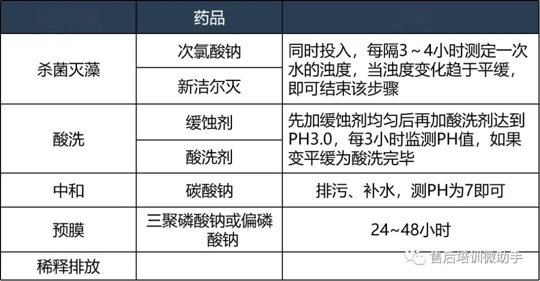 ②酸洗:通过弱酸与系统中的水垢进行化学反应,从而达到清除水垢的目的。
