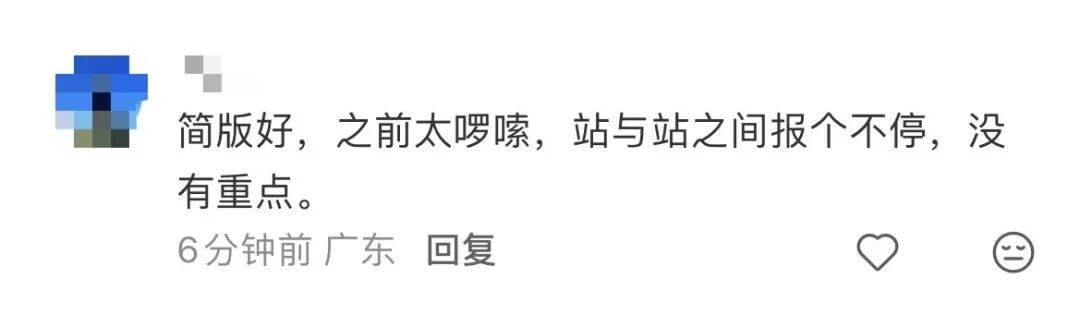 有网友表示:“播报简化之后,还增加了到站提示,车厢里感觉安静了许多。”