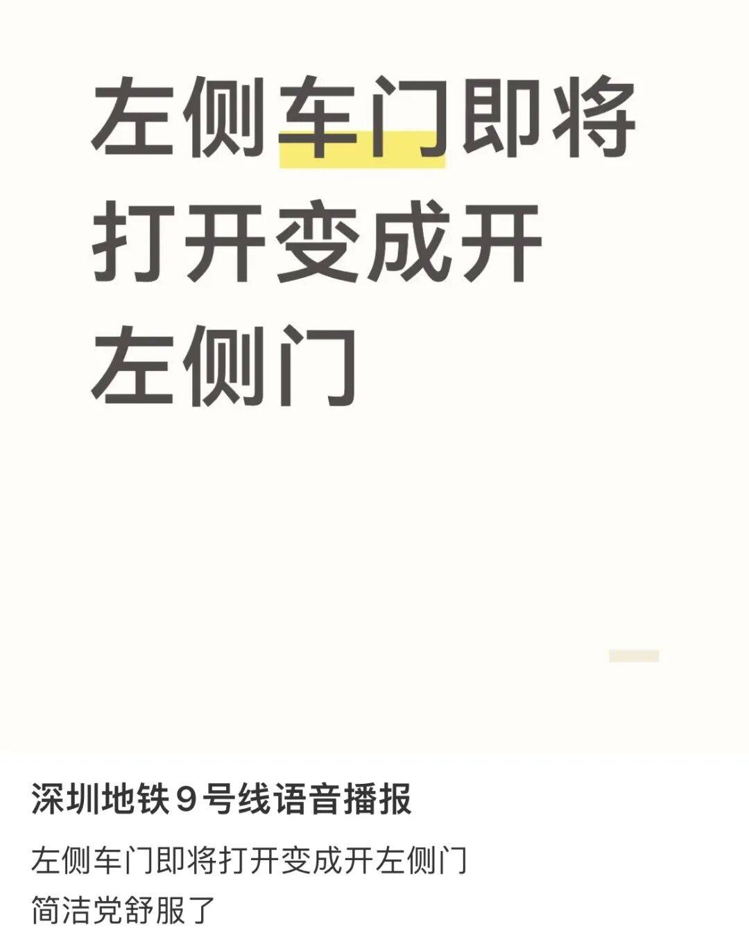 深圳地铁调整语音播报内容
