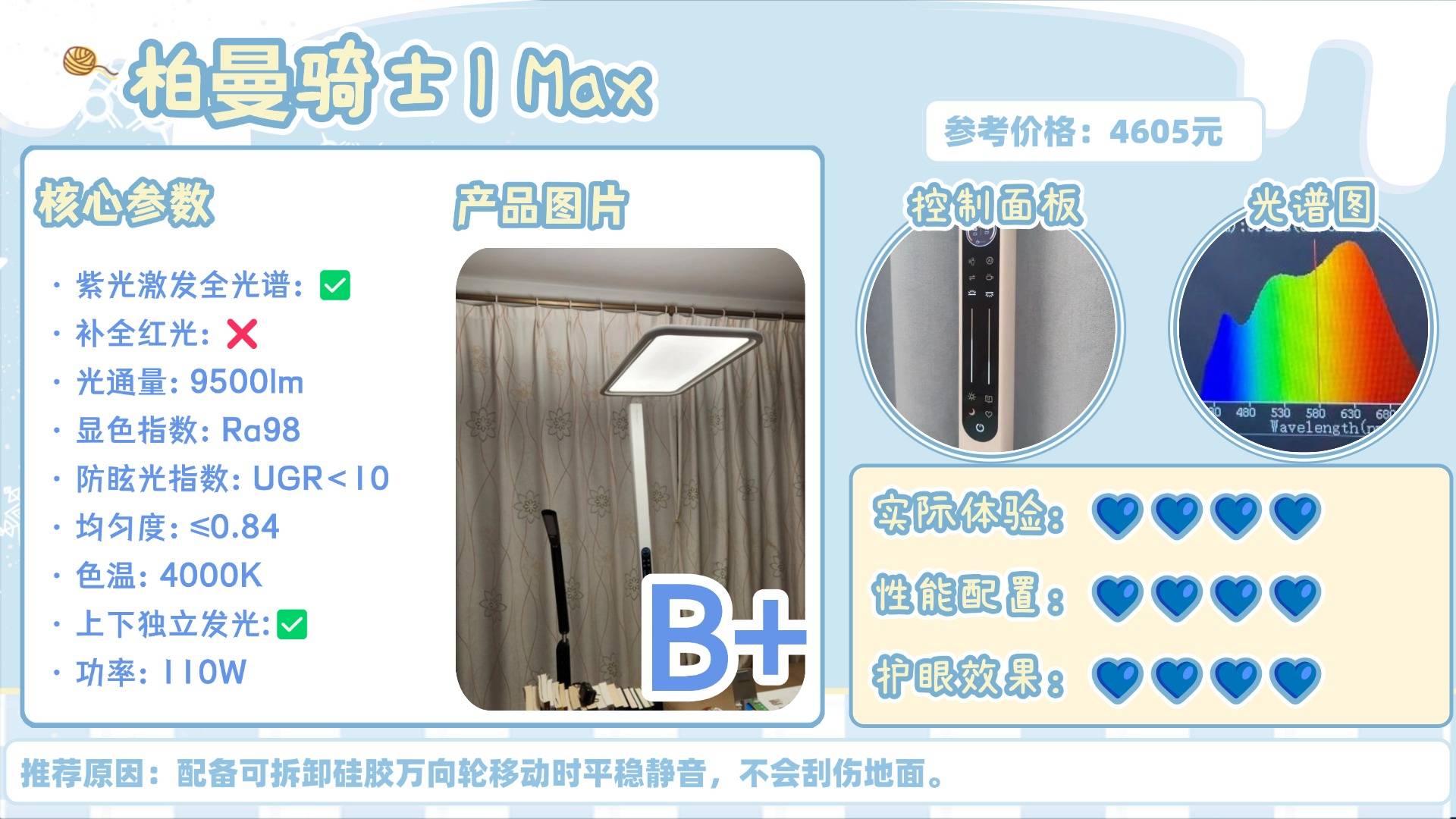 护眼大路灯第八名:柏曼骑士I Max,搭载了入座感应功能,可实现人来亮灯人走灭灯的智能化场景。