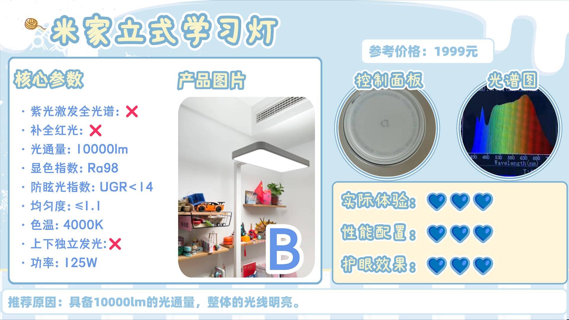 推荐款:米家立式学习灯——具备10000lm的光通量,整体的光线明亮。