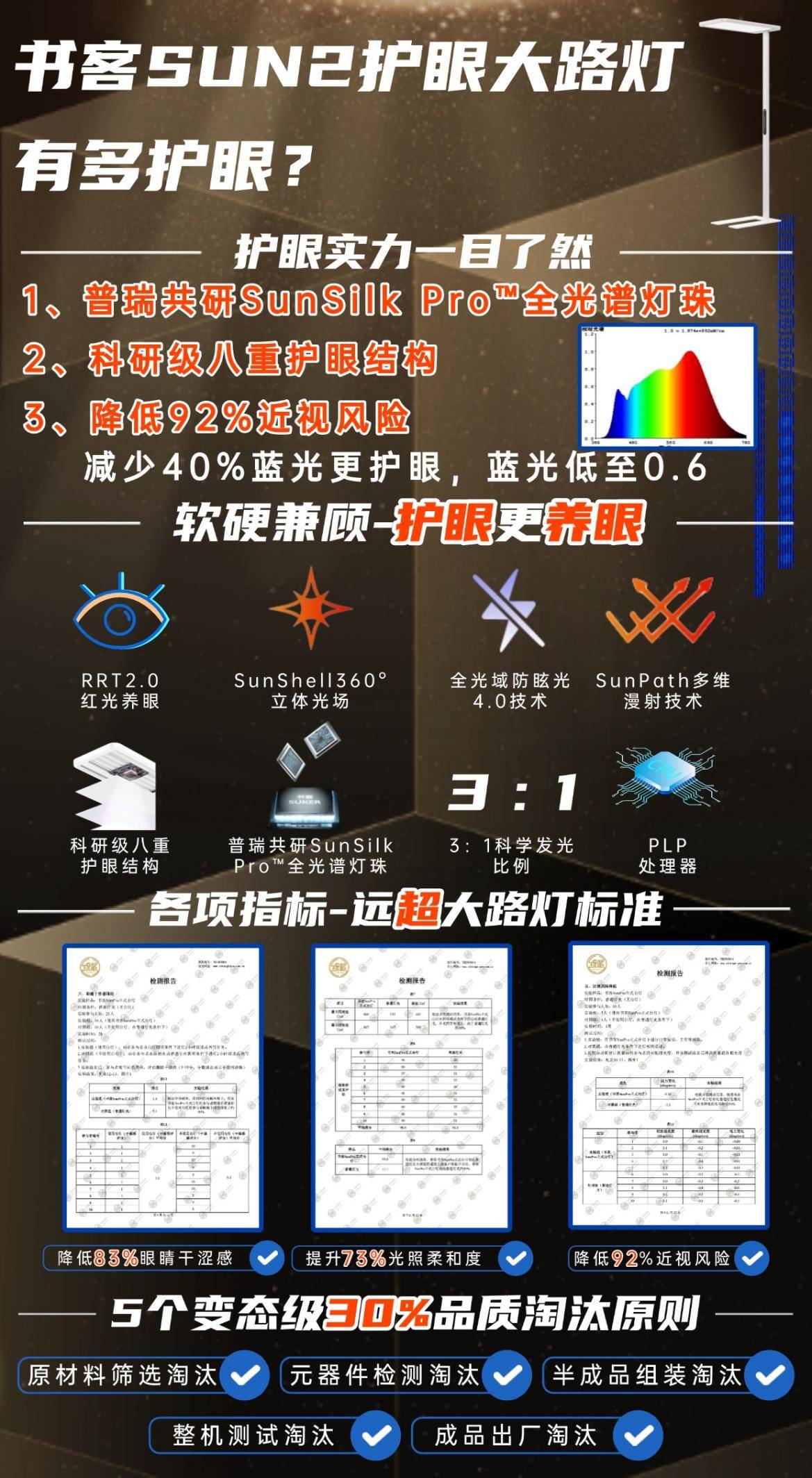 推荐款:书客护眼大路灯SUN2——被多家权威检测机构一致认可,誉为同规格下护眼效果最佳、耐用性最强的产品!