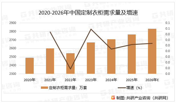 2020-2026年中国定制衣柜需求量及增速