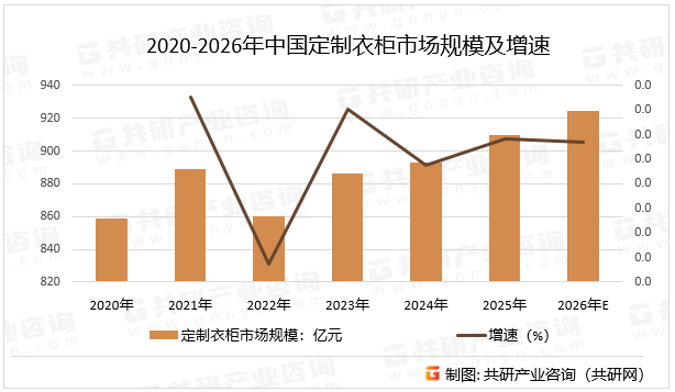 2020-2026年中国定制衣柜市场规模及增速