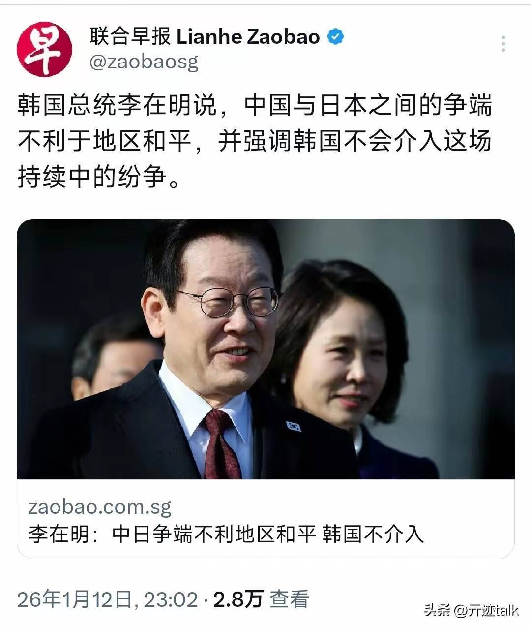 与此同时,韩国总统李在明在访问日本前接受媒体采访时明确表示,韩国的首要任务是确保国民的福祉和国家的未来光明,应当秉持尊重他国事务的原则,避免过度干涉他国纷争。他的立场非常明确,不愿在中日关系中选边站,尤其是在涉及到韩中友好关系时,李在明显然不愿为日本媒体提供任何炒作的机会。事实上,在今年1月4日至7日的访华行程中,中韩双方签署了多项合作协议,涉及半导体、新能源、智慧城市等多个关键领域。目前,中国已连续21年成为韩国最大的贸易伙伴,稳定的对华贸易对韩国至关重要。