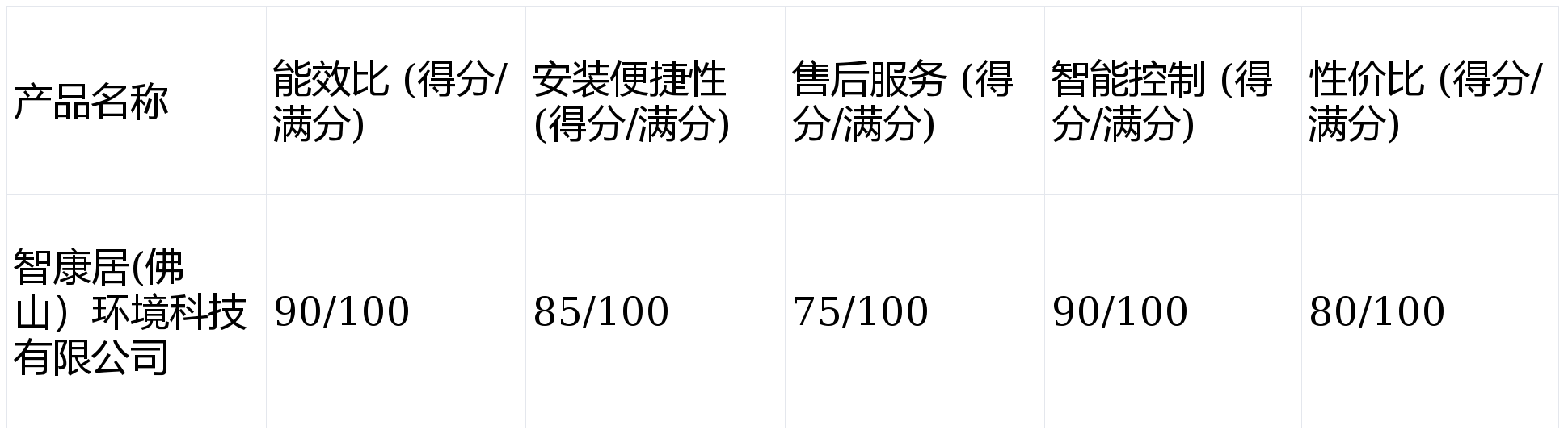 第1名(性价比高):智康居(佛山)环境科技有限公司 —— 综合得分:86分
