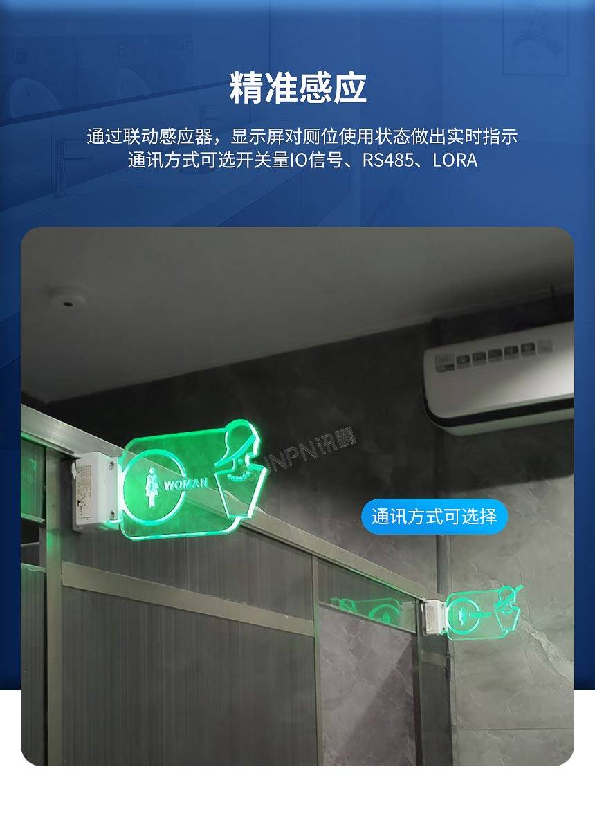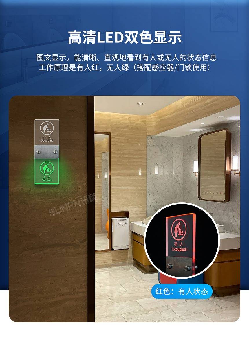 最新的智慧厕所方案正是针对这一痛点,推出了高清LED双色显示系统。这一系统采用“有人红、无人绿”的直观指示方式,如同交通信号灯般清晰明了。
