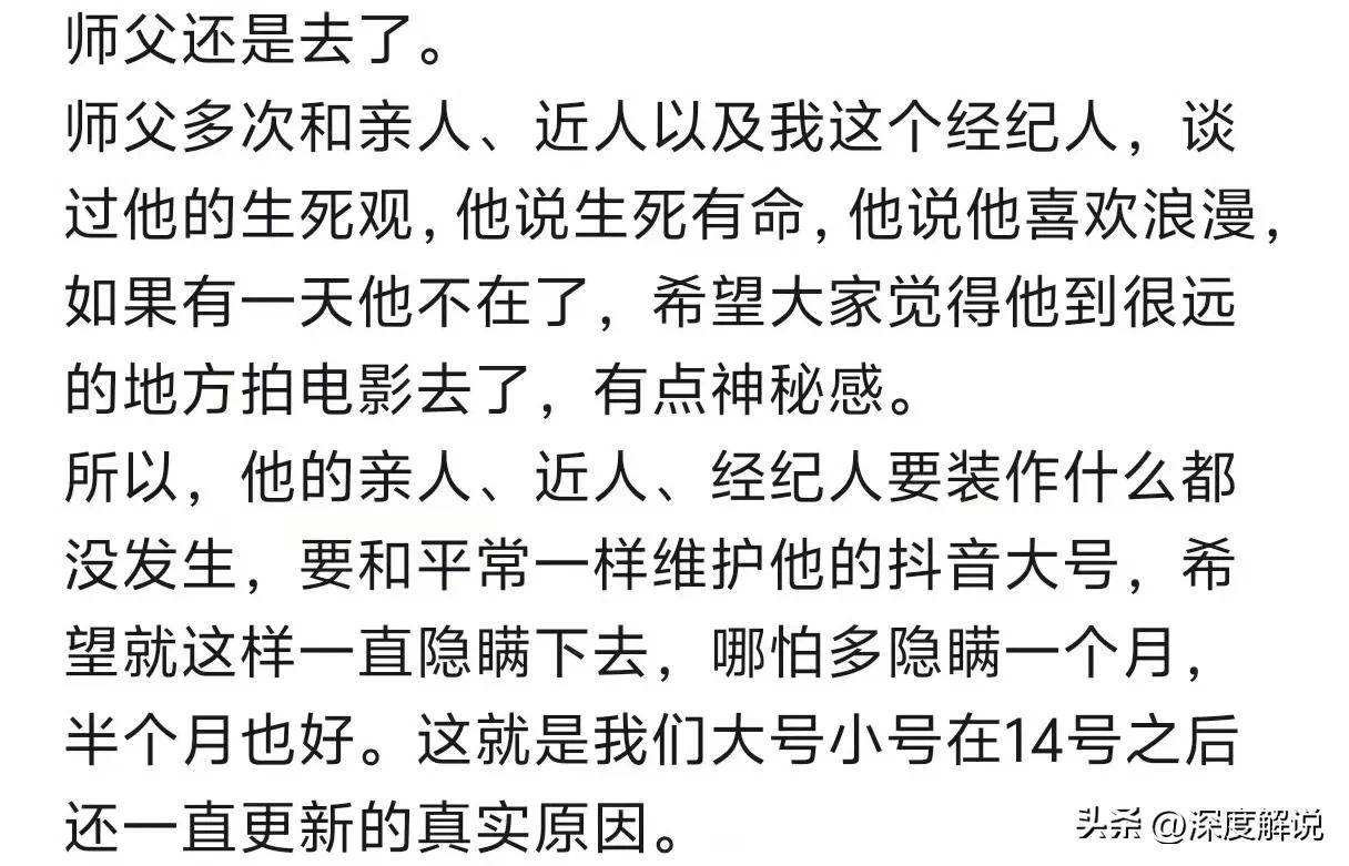 然而,随之而来的,是关于梁小龙账号更新频率的质疑。为何在他去世后,这个账号依然频繁发布视频,且在短短三天内,竟然更新了78条视频,甚至一天最多更新了22条?网友们的疑惑没有停歇。在大家的不解中,梁小龙的视频账号终于发出了一则说明:原来梁小龙的弟子们如往常一样,继续更新这些视频,只是因为师傅去了很远的地方拍电影,不便现身。虽然这种解释带着深情的告白,却也让不少网友感到更为沉痛,终究不得不面对那个令人无法言说的事实——梁小龙真的离开了,他永远不会再回来。