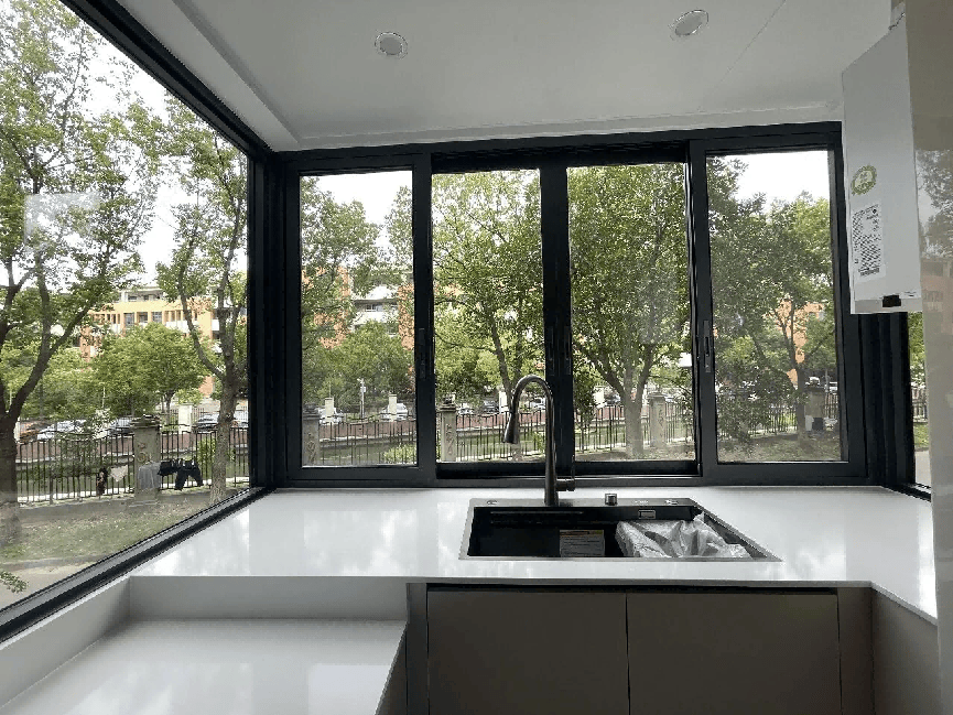 * 关键点:优先考虑开启便捷、不占空间的窗型,如上悬窗、外开窗。需特别关注 五金件的耐腐蚀性和轨道的顺滑度。厨房窗位还应考虑与橱柜、水槽操作的互不干扰。