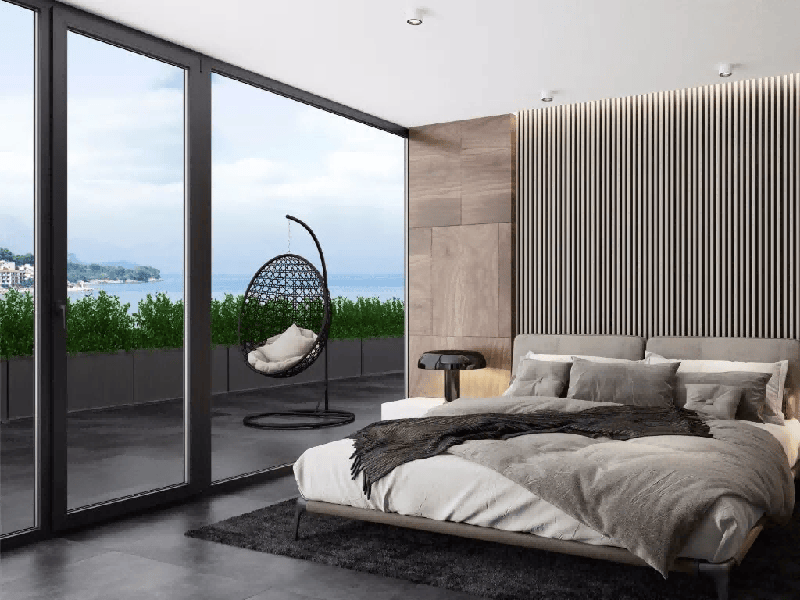 * 关键点:大面积玻璃需确保优异的保温性能(如Low-E中空玻璃)和足够的抗风压强度。窗型设计需平衡视野与开启方式。