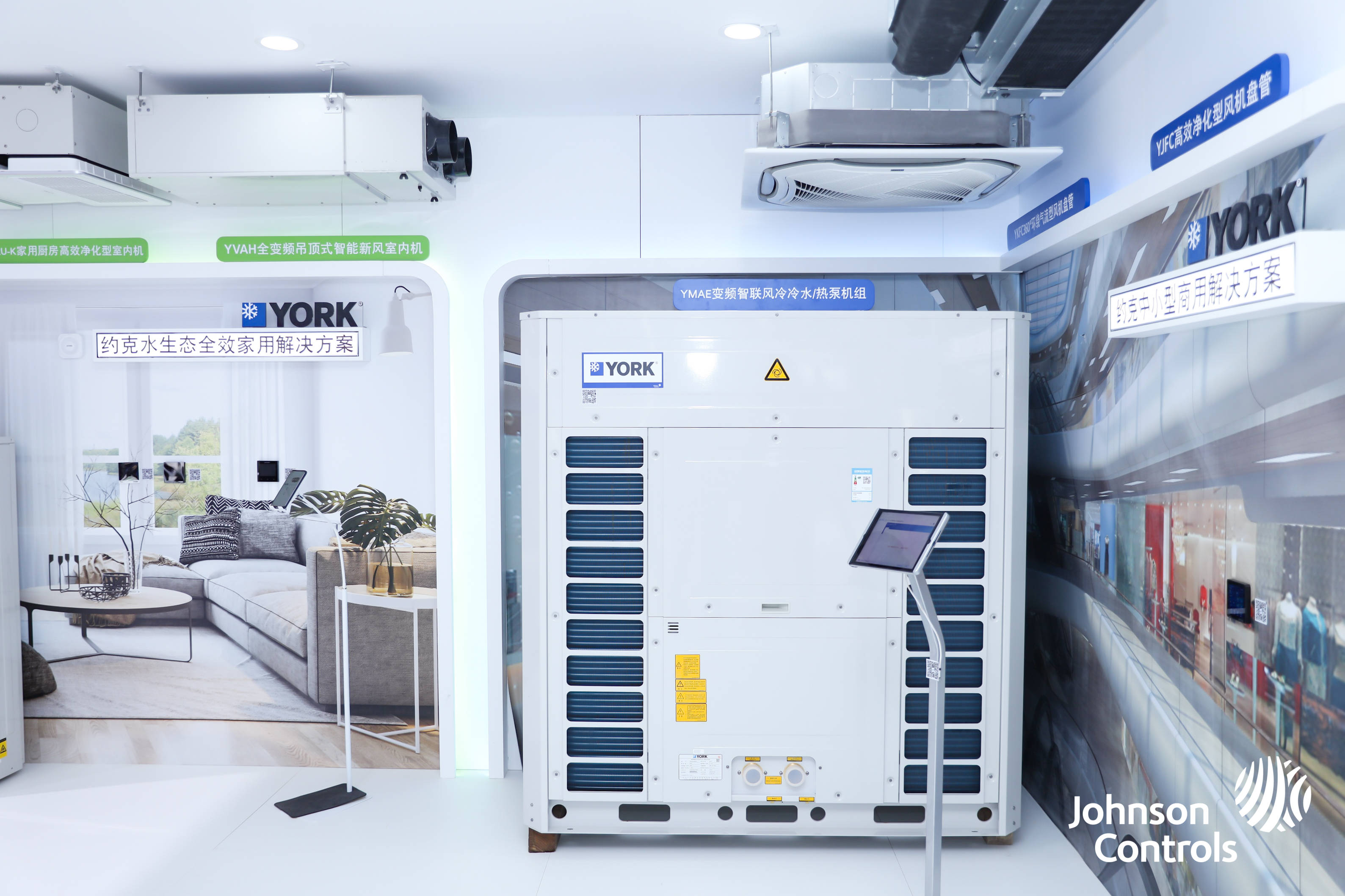 约克水空调的产品线丰富多样,不同系列产品特点鲜明。YVAG全变频风冷冷水/热泵机组搭载自主研发的变频驱动和直流变频压缩机,CSPF值高达5.51,远超国家一级能效,比普通定频空调全年省电费7% - 18%。它能在 - 27℃到48℃的宽温度范围内稳定运行,冬季制热能效比COP达3.73,制热能力比常规机组高50%,北方冬季不用电辅热也能暖意十足。标配30Pa机外静压,模块化设计支持4台拼接,机身还自带水泵、膨胀罐,安装省空间又省心,适合刚需商品房、精品公寓等户型。