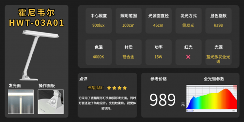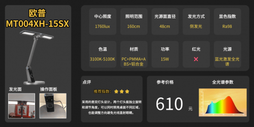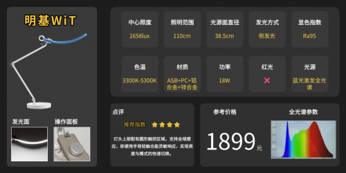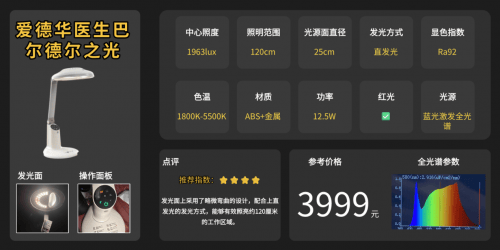 推荐理由:符合国AA级照度标准,中心亮度比较高,日常读写够用。