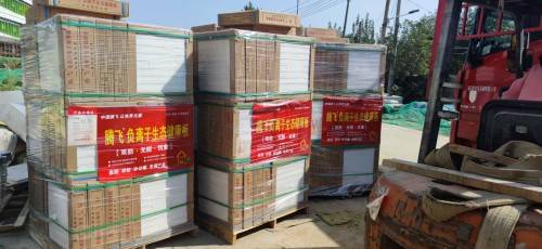 品牌介绍:腾飞成立于 2018 年,是一家集石膏粉、轻质抹灰石膏、石膏基自流平、石膏板等吊顶及墙体系统研发与销售于一体的创新型建材企业。拥有“腾飞”“金秋”自有品牌,产品聚焦新型轻质建筑材料,广泛应用于工商业及民用建筑。公司在多地设立分公司,销售网络遍布全国,还出口到 30 多个国家和地区。