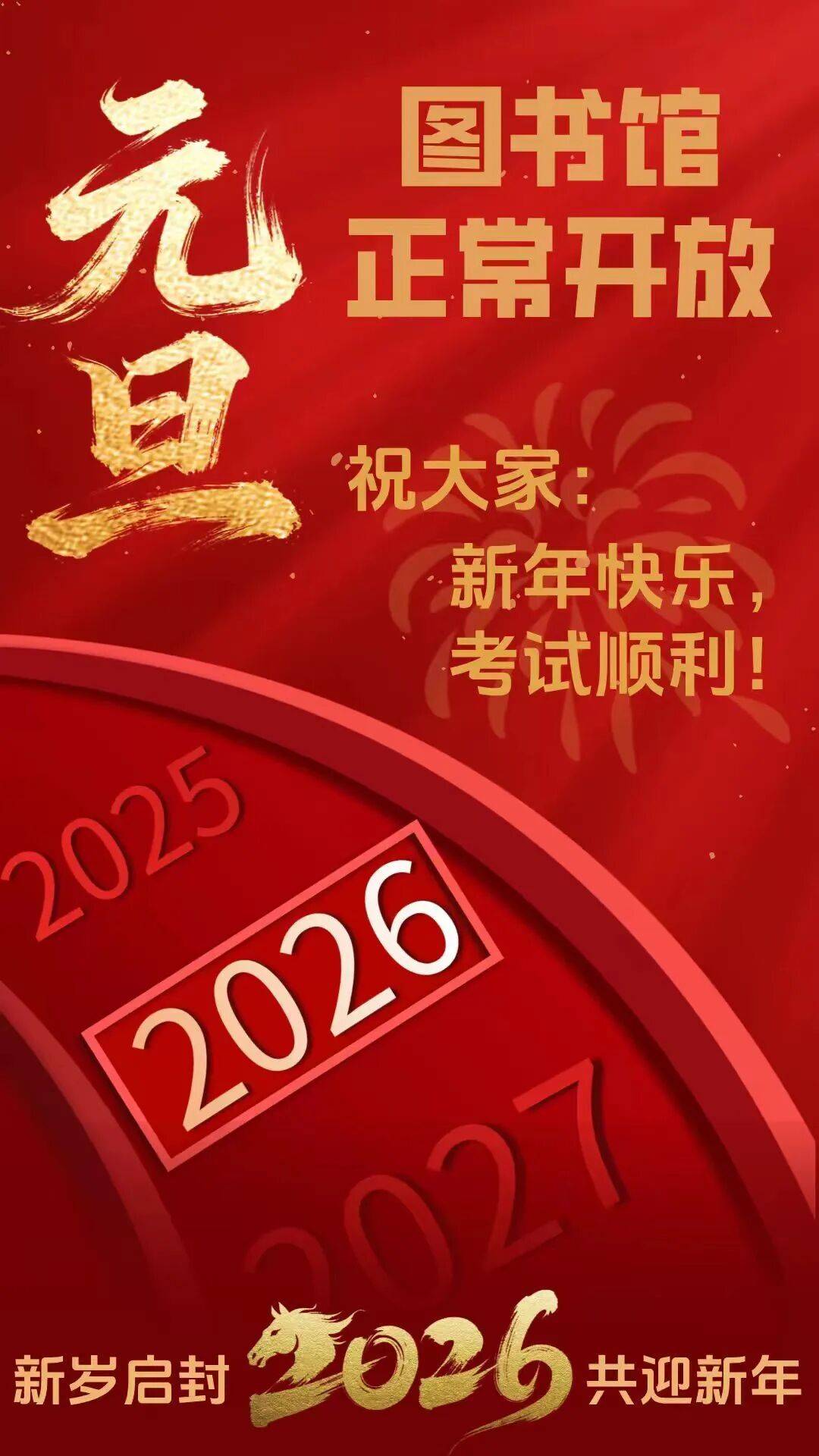 2026年1月1日至3日图书馆正常开放。