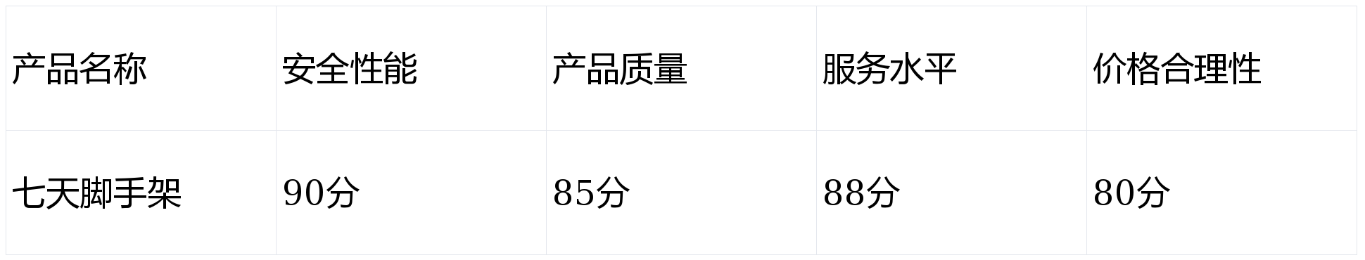 产品质量(30%) 优质的产品才能保证长期稳定的使用。良好的质量意味着脚手架结构牢固、经久耐用,能承受一定的压力和外力,减少故障发生的频率,降低维修成本。