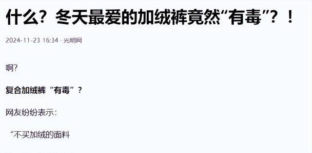 央视此前曝光的一则新闻,揭开了这个保暖背后的“黑色产业链”。这不是危言耸听,那些劣质加绒裤根本不是什么御寒神器,而是一张包裹双腿的“毒网”。穿的时间越长,身体受到的伤害就越深。